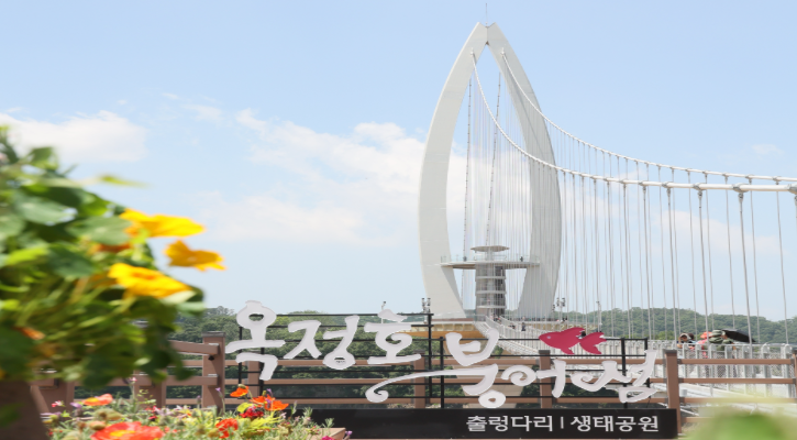 ✅ 붕어섬 출렁다리: 길이 약 600m, 호수 위를 걷는 짜릿함